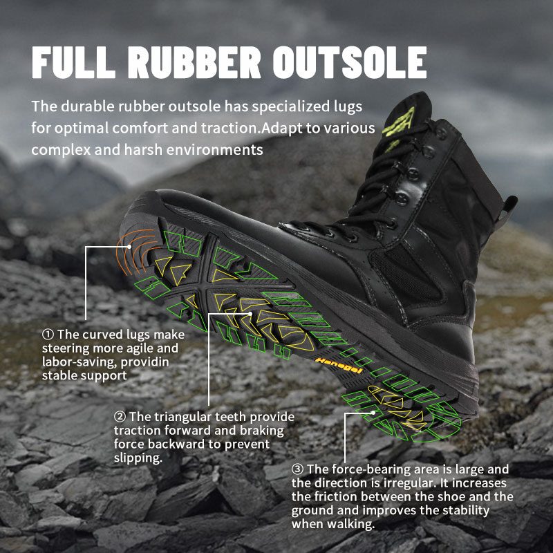 Sol luar karet yang tahan lama memiliki lugs khusus untuk kenyamanan dan traksi optimal. Beradaptasi dengan berbagai lingkungan yang kompleks dan keras