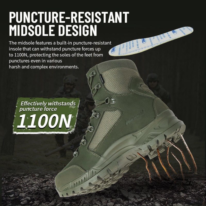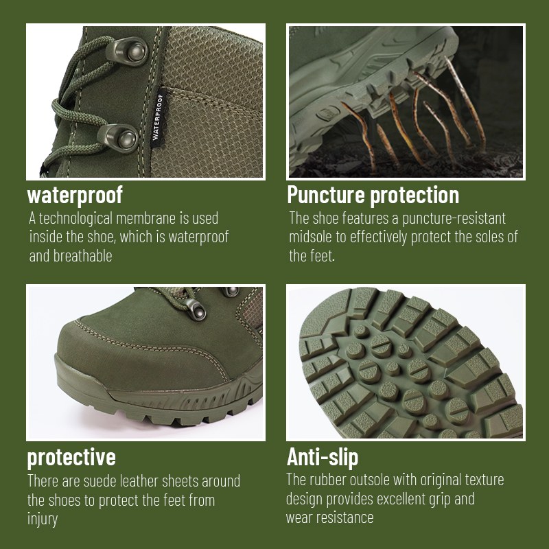 Medan yang kasar. Bahaya tersembunyi. Tanah yang tidak dapat diprediksi. Sepatu Tempur Tahan Air Tahan Tusukan dibuat untuk saat-saat ketika Anda tidak mampu untuk melihat ke bawah dan khawatir. Direkayasa dengan midsole tahan tusukan yang menahan paku, kaca, dan serpihan tajam, ditambah perlindungan kedap air penuh yang membuat Anda terus bergerak dalam kondisi basah. Kirimkan pertanyaan kepada kami untuk informasi lebih lanjut.