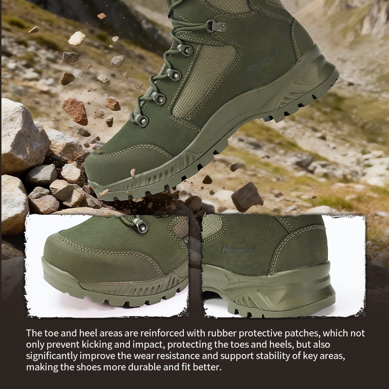 Midsole memiliki lapisan tahan tusukan yang mampu menahan gaya hingga 1100N. Artinya, kaki Anda tetap terlindungi dari paku, kaca, dan serpihan tajam—tidak peduli seberapa keras kondisi tanah.