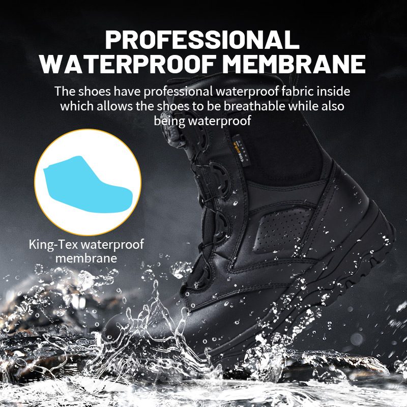 Dibuat dengan membran kedap air profesional yang menahan air sekaligus membiarkan kaki bernapas—sehingga Anda tetap kering, tidak berkeringat.