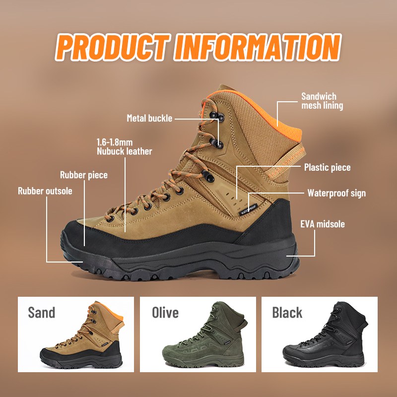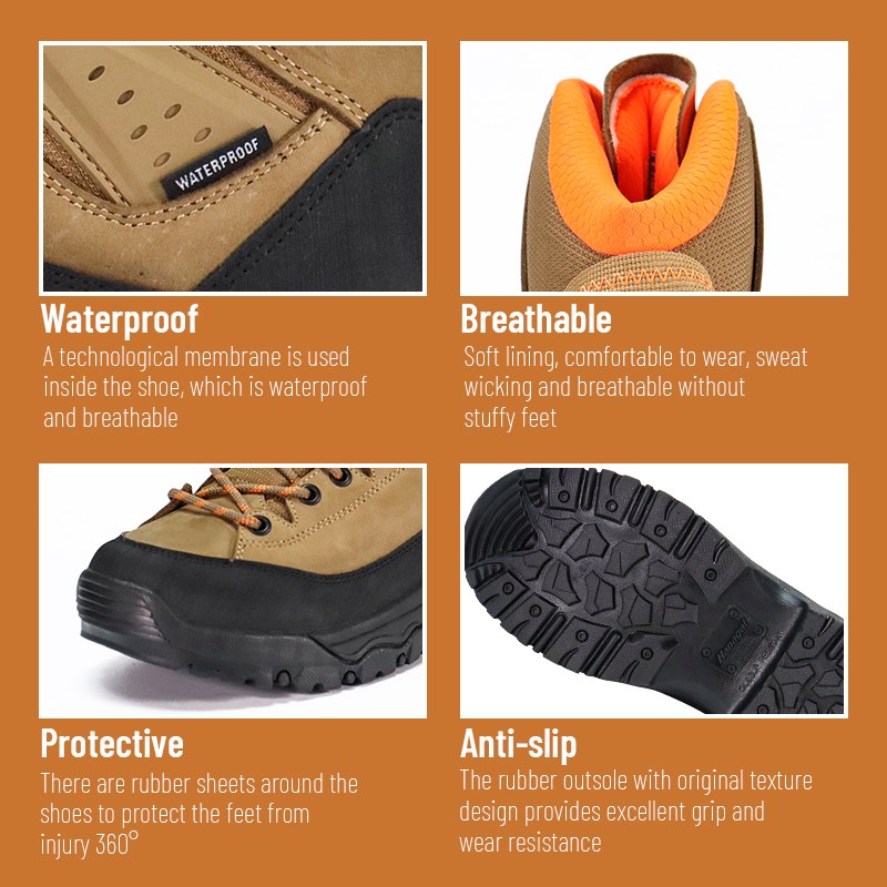 Sepatu Hiking Tahan Air Anti Slip Pegangan Kuat ini tersedia untuk penyesuaian warna, bahan, dan detail, dengan MOQ 800 pasang, ideal untuk kolaborasi merek dan pengadaan kelompok. Dan sepatu trekking ini memiliki keunggulan sebagai berikut: